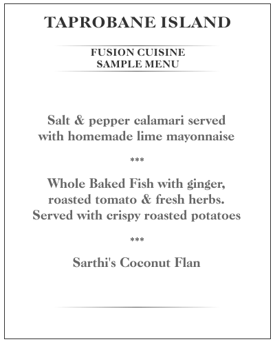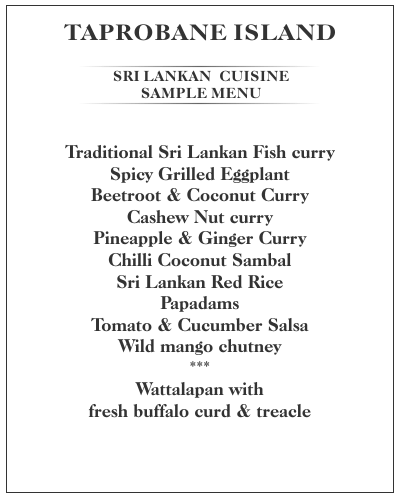 At Taprobane Island you have your own private chef to provide you with delicious tropical cuisine built around the freshest of local ingredients. Meals are predominantly seafood with an Asian influence, but our chefs are also brilliant at creating mouthwatering Sri Lankan curries and hoppers for which Sri Lankan cuisine is known. After discussing your menu requirements for the day, your chef and his staff will procure the food from local markets and local fisherman who have hauled in their catch overnight.